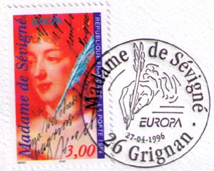 Гриньян. Первый день марки М3148. Рука с пером, памятный текст.