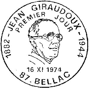 Беллак. Первый день марки М1895. Портрет Жана Жироду.