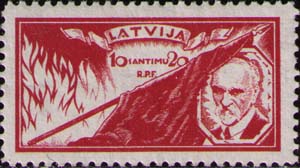 Латвия, 1930, 10 S. / 20 S. П. высокая. 11 (1/2) и б/з. коричнево-карминная