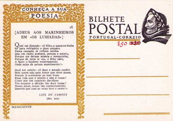 На карточке: стихи Камоэнса из поэмы «Лузиады».