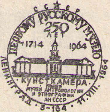 Ленинград. 250 лет со дня открытия первого русского музея — Кунсткамеры. Здание Кунсткамеры, в башне которой находится Музей Михаила Ломоносова.