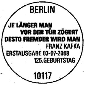 Берлин. Первый день марки М2680. Цитата из романа Франца Кафки «Замок».