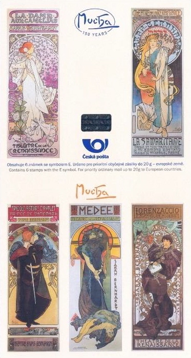 Марка издана в карнете. На обложке буклета — плакаты к спектаклям парижского театра Renaissance с участием Сары Бернар работы Альфонса Мухи: «Дама с камелиями» (1896, по пьесе Александра Дюма-сына), «Самаритянка» (1897, по пьесе Эдмона Ростана), «Гамлет» (1899, по трагедии Уильяма Шекспира), «Медея» (1898, по пьесе Катюля Мендеса), «Лоренцаччо» (1896, по пьесе Альфреда де Мюссе).